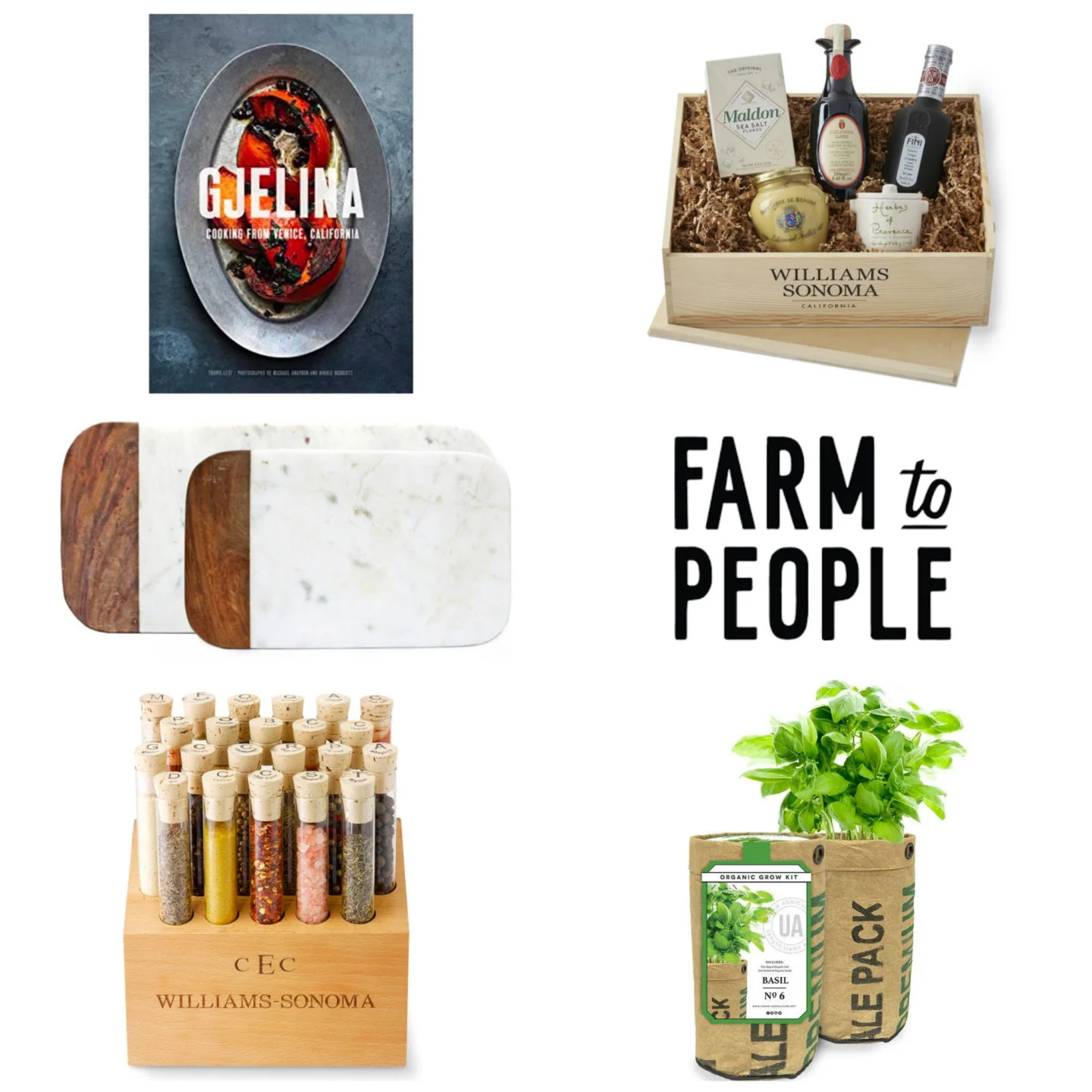 Gjelina Cookbook // Chuck’s Pantry Gift Crate // Marble + Wood Cutting Board // Farm to People Gift Bundles // Spice Block Set // Urban Agriculture Grow Kit